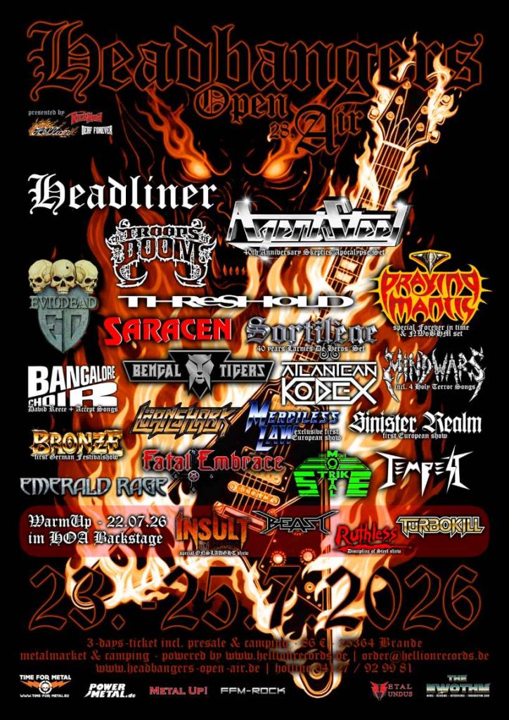 Con más de 25 años de trayectoria, el Headbangers Open Air es reconocido como el “festival de metal más grande del mundo en un jardín trasero”, y cada edición reúne a miles de fanáticos que celebran lo mejor del heavy, thrash, speed y power metal clásico. Para su versión 2026, destacan agrupaciones de renombre internacional como Agent Steel, Troops of Doom, Threshold, Praying Mantis, Saracen, Atlantean Kodex, Bangalore Choir, entre muchas otras.