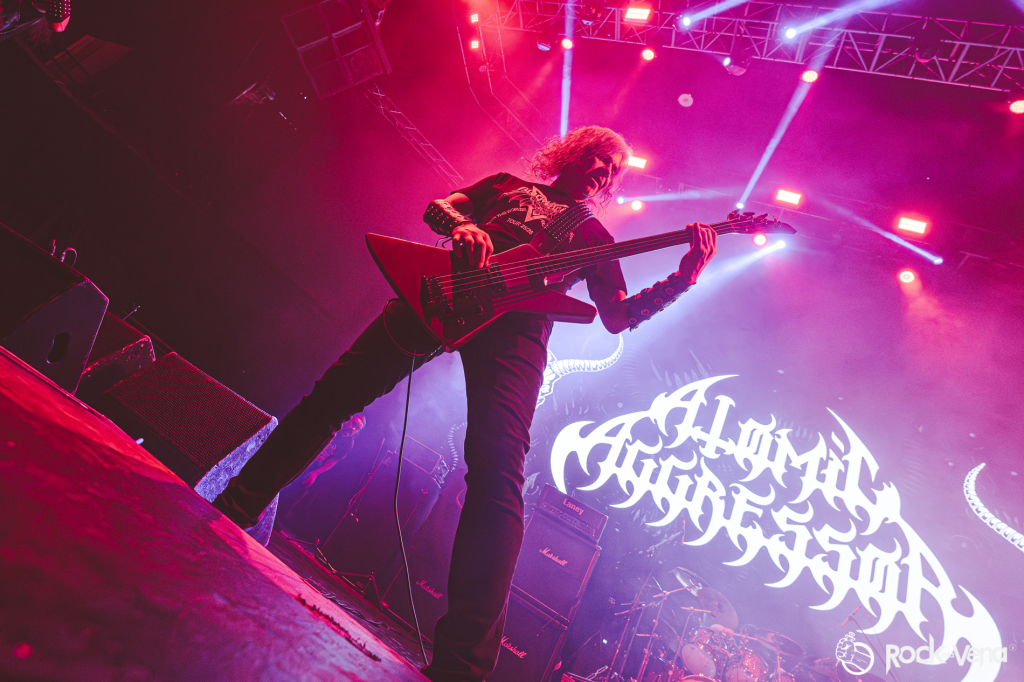 Luego fue turno de Atomic Aggressor, un nombre legendario del death metal nacional que volvió al Caupolicán con la fuerza de quienes saben que su historia pesa. Su show resonó como un tributo a las raíces del metal extremo chileno, un puente entre los albores underground y la escena actual. Con “The Primal Chaos” abrieron su set con determinación. A cada acorde, se sentía que llevaban décadas golpeando esa fragua sonora y que su temple no había cedido: temas como “Tormenting voices”, «Unbodied rites» y “Beyond Reality” no fueron meras canciones, sino estandartes de una tradición que resiste. El público respondió con fervor, reconociendo en ellos a verdaderos veteranos del género, guardianes de una antorcha que merece seguir encendida. Esa actuación fue como escuchar el pasado y el presente del metal chileno al mismo tiempo, un acto de reivindicación sonora.