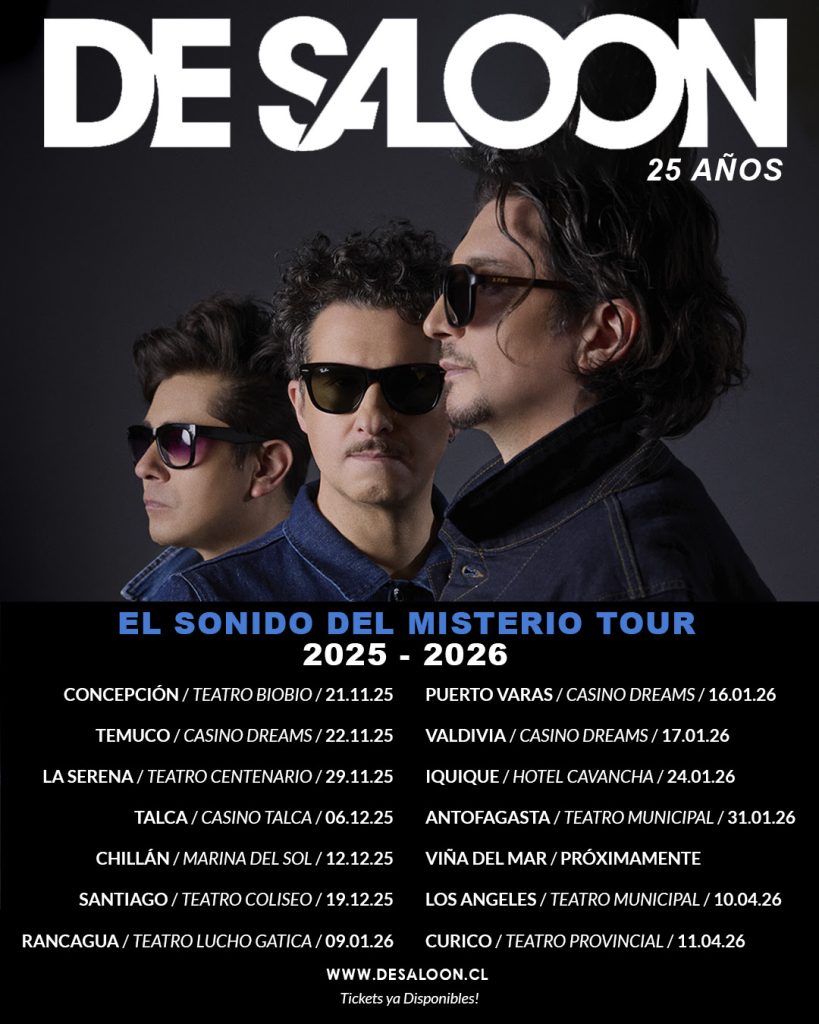 En esta nueva etapa de De Saloon está el anuncio como parte del line up de Lollapalooza Chile 2026, que se realizará del 13 al 15 de marzo en el Parque O´Higgins. Además el nuevo disco tendrá una gira promocional que ya tiene confirmada 14 ciudades.