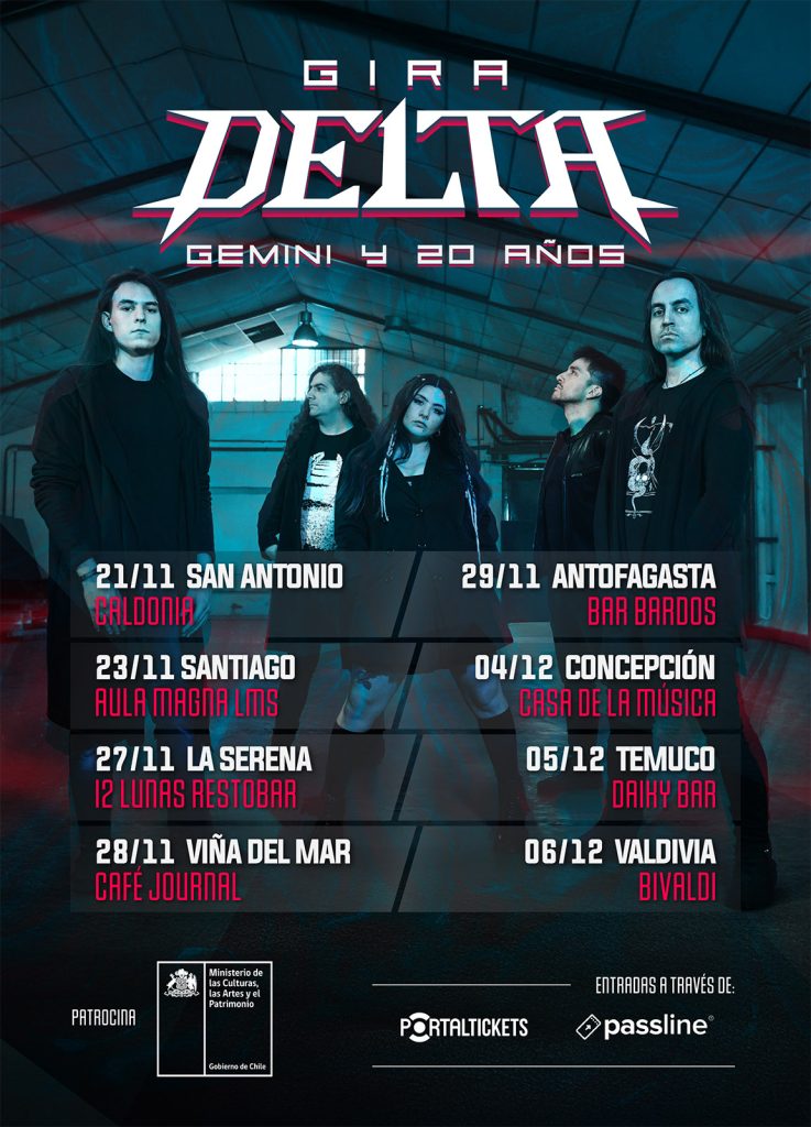La espera ha terminado. La influyente banda de metal progresivo Delta dará inicio a su ambiciosa gira nacional «Gemini y 20 Años» este viernes 21 de noviembre en San Antonio y el domingo 23 en Santiago, comenzando un recorrido por ocho ciudades que celebra dos décadas de carrera y salda su deuda con el público chileno. Una travesía que cuenta con el patrocinio del Ministerio de las Culturas, las Artes y el Patrimonio