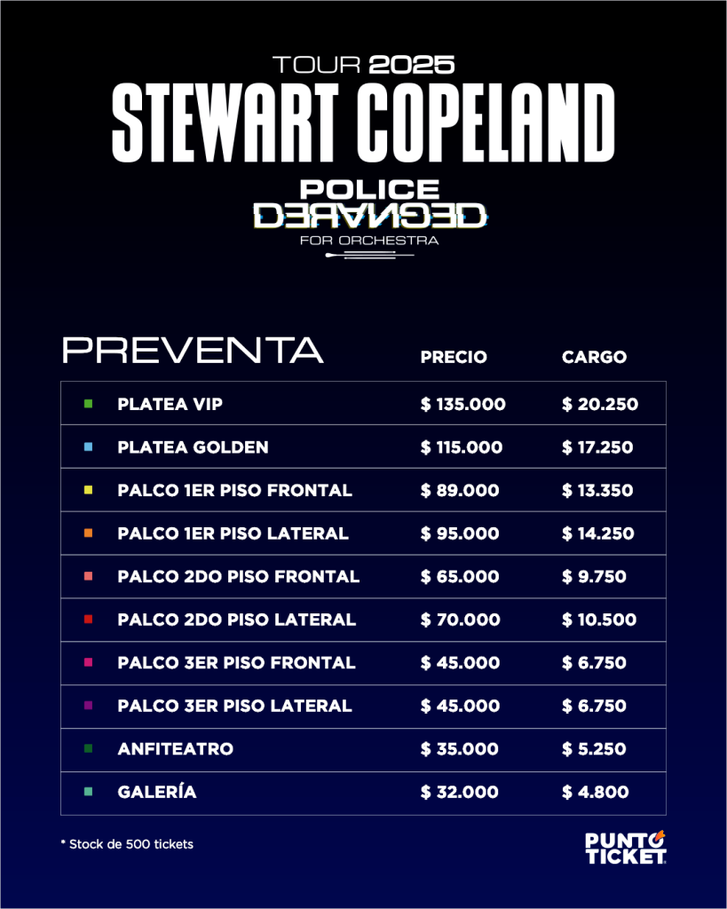 Las entradas están a la venta en Puntoticket con los siguientes precios en preventa de las primeras 500: