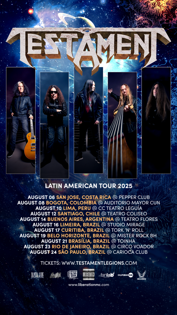 El Latin American Tour 2025 de Testament, comenzará el 6 de agosto en Costa Rica, para continuar por otras 10 ciudades, incluyendo Santiago, donde su legión de fanáticos seguirá renovando su fervor por esta sólida y fascinante agrupación.