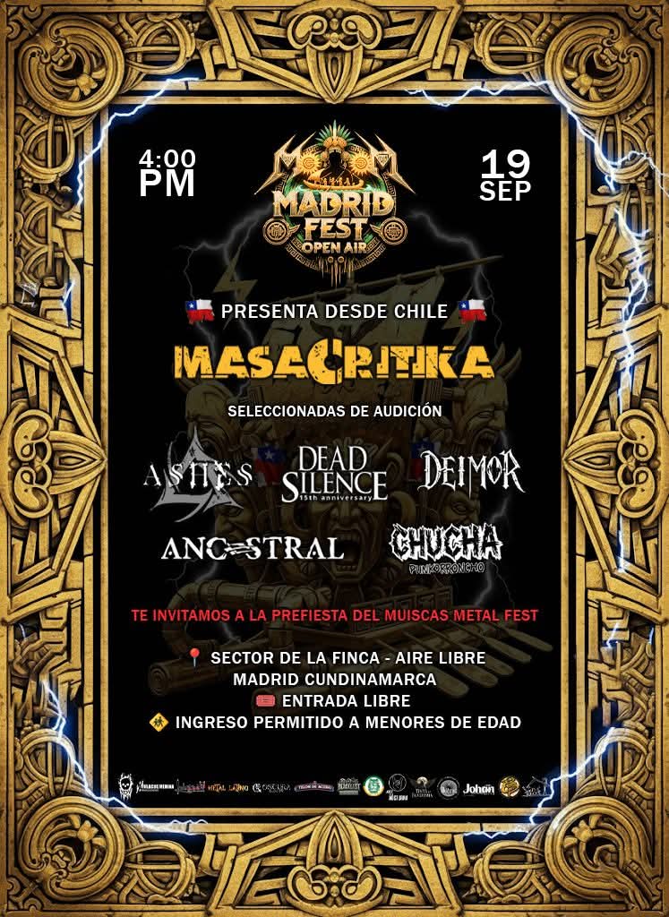El primer encuentro será el 19 de septiembre en el festival Madrid Fest Open Air, que se llevará a cabo en Madrid, Cundinamarca. Allí, MasaCritika compartirá escenario con destacadas agrupaciones colombianas como Ashes, Dead Silence, Deimor, Ancestral y Chucha. El evento, de carácter gratuito, promete una jornada de rock y metal en un formato al aire libre que convoca a seguidores de la música alternativa.