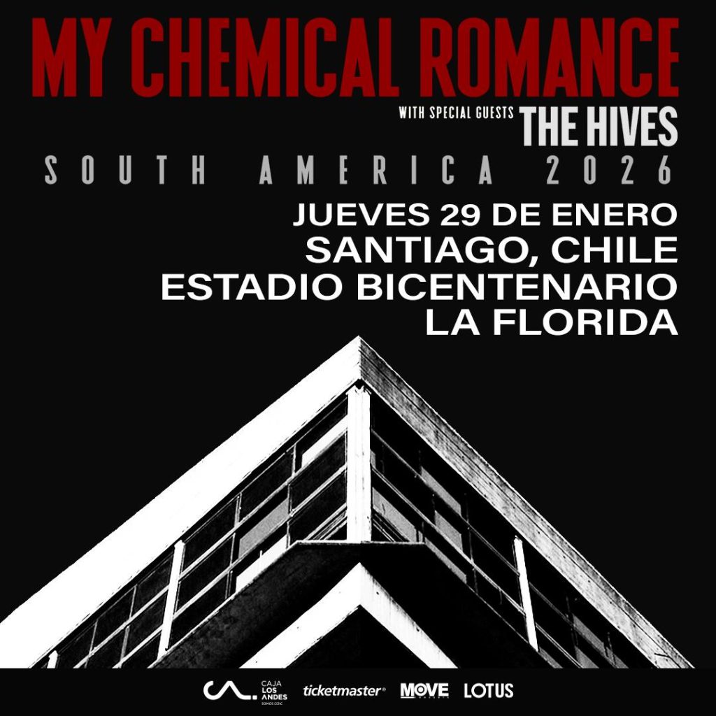Luego de 17 años de su última visita, My Chemical Romance confirma su regreso a Chile con South America Tour 2026, junto a The Hives como Special Guest. La cita es el 29 de enero de 2026 en el Estadio Bicentenario de La Florida.
