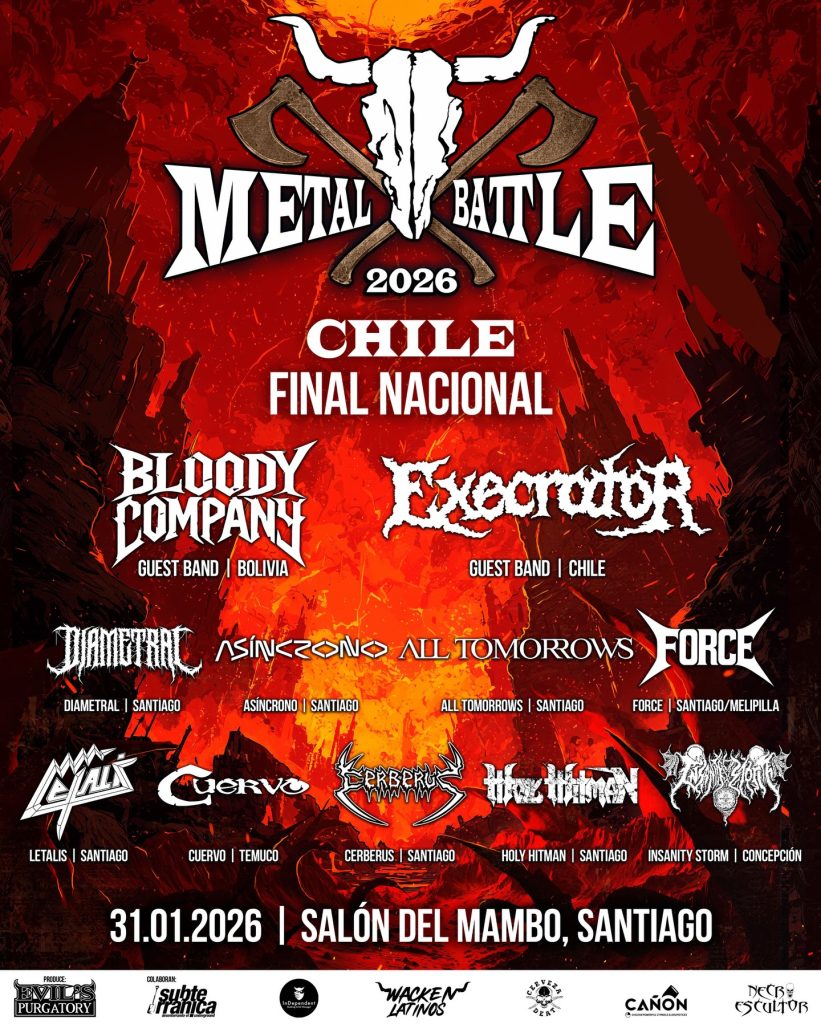 Nueve de las bandas más destacadas de la escena metalera nacional fueron seleccionadas para esta instancia crucial, donde se disputarán solo dos cupos para representar a Chile en la Final Regional Sudamericana de Metal Battle, que se llevará a cabo en Lima, Perú en el mes de febrero. Allí, los proyectos clasificados competirán frente a bandas de otros países del continente por el paso directo al legendario Wacken Open Air Alemania.
