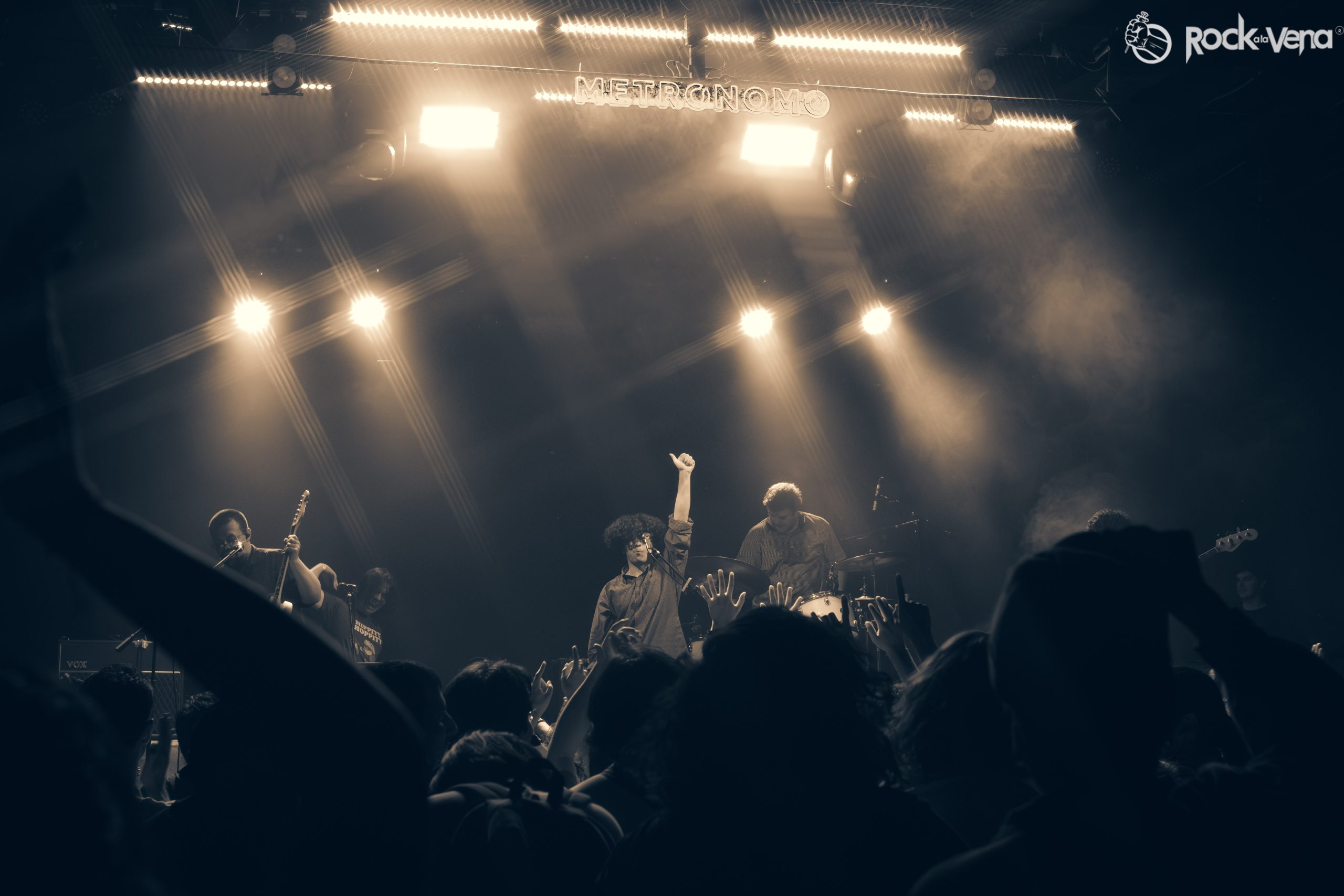 Haciendo uso de un sonido más cargado a lo stoner, la banda dio pie a su show con “Prudente”, “Bronce” y “Lo mínimo”, llevando a que la atmósfera del lugar se tiñese rápidamente de un tenue velo nostálgico, algo que caracteriza de forma consistente al disco, y que invitó a los asistentes a sentirse en comodidad de sacar a flote las emociones que se viven en los momentos de duelo.