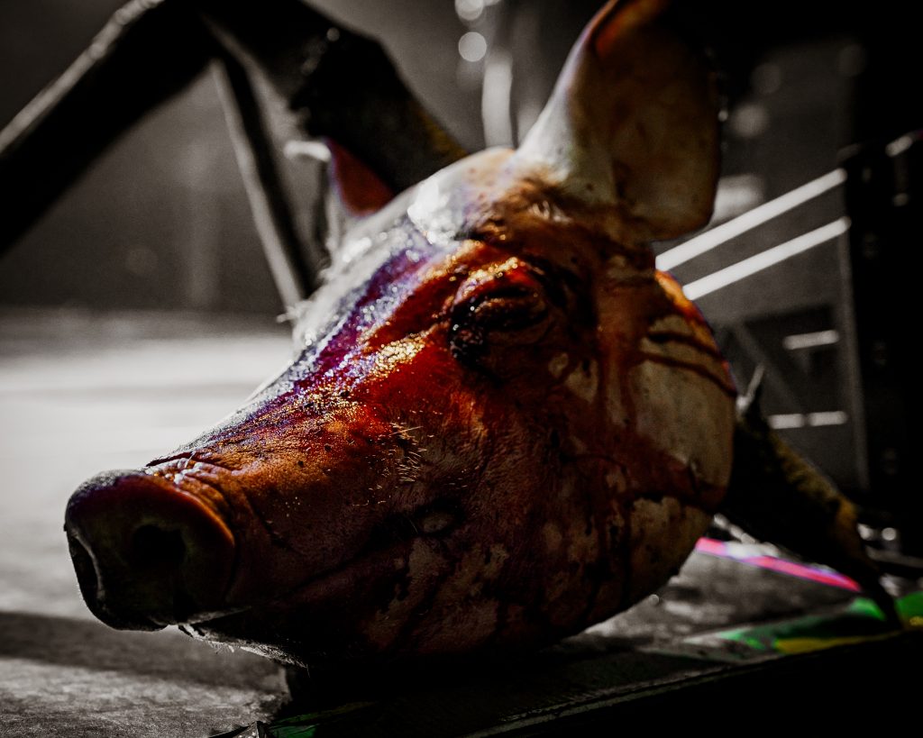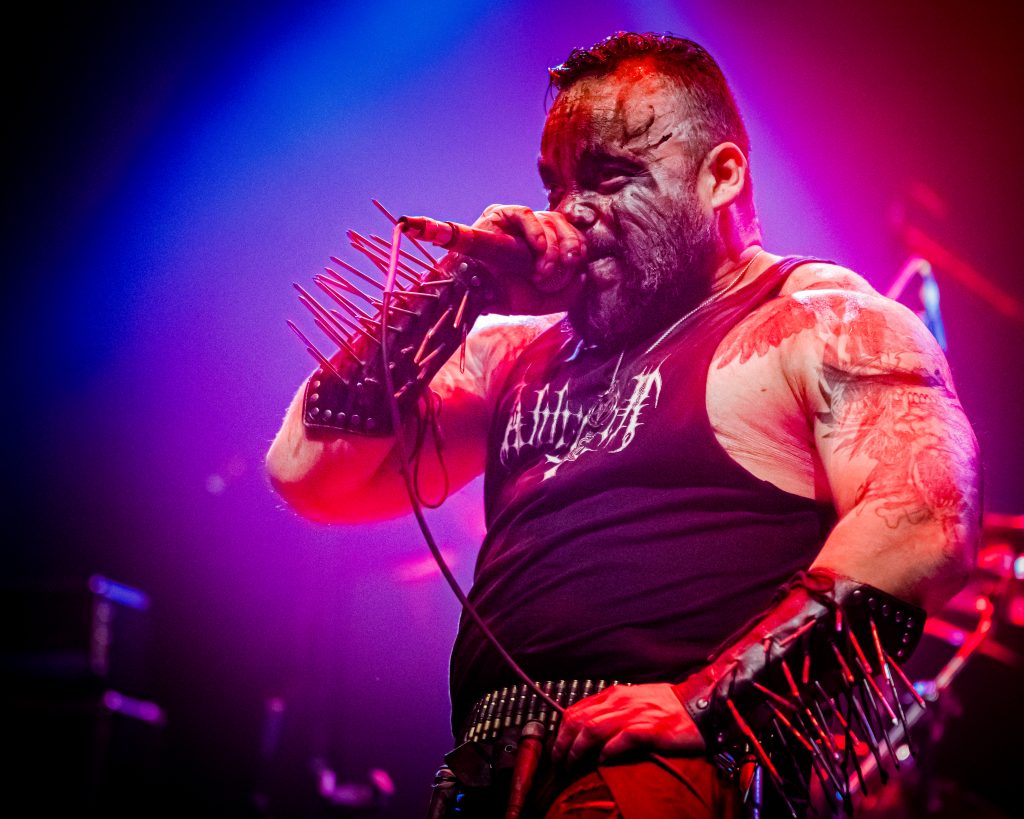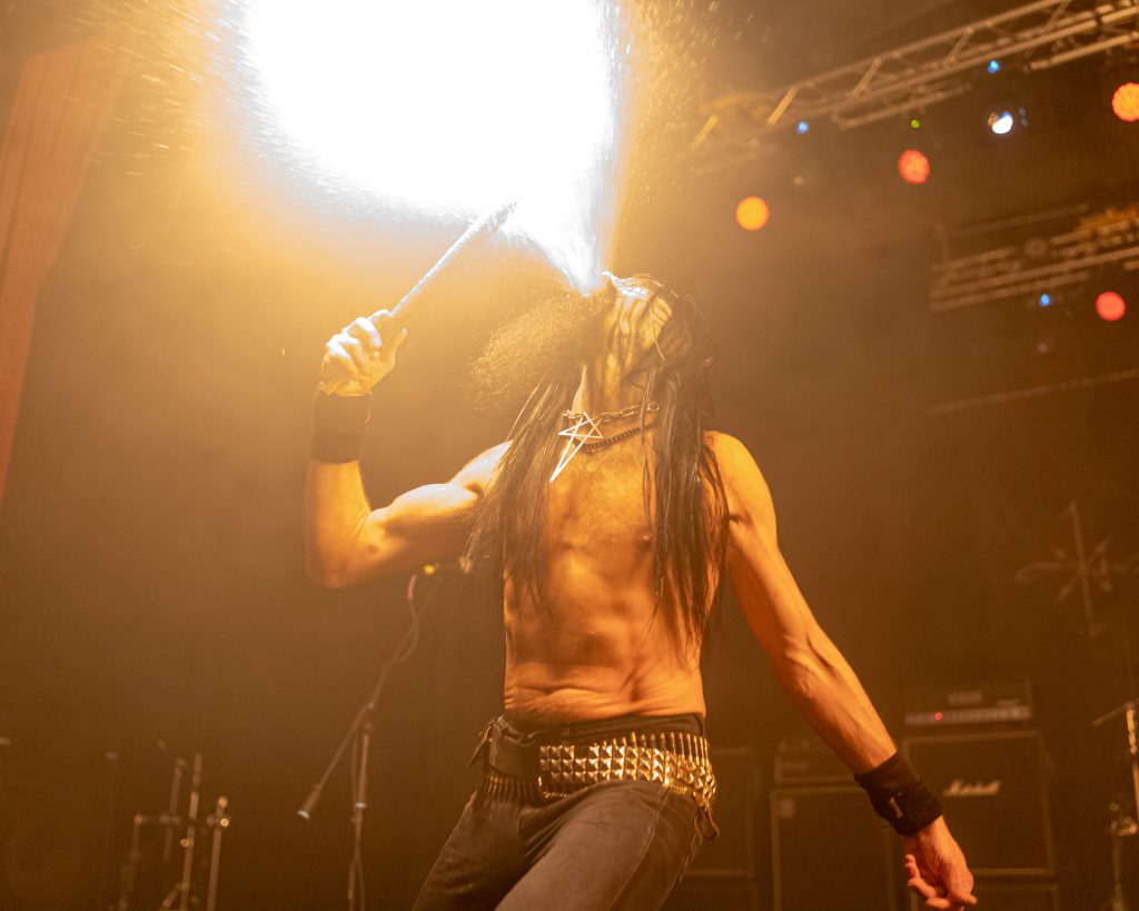 Luego fue el turno de Abbathor, quienes encendieron aún más la sala con su crudeza demoledora y una puesta en escena que no pasó desapercibida: sobre la tarima reposaban cabezas de oveja y cerdo, elementos que aportaron un carácter macabro y ritual al espectáculo. Desde el arranque con “Abbathor” hasta el cierre con “Fire & Blood”, cada tema se sintió como una embestida directa al pecho, con un sonido sólido y una actitud desafiante.