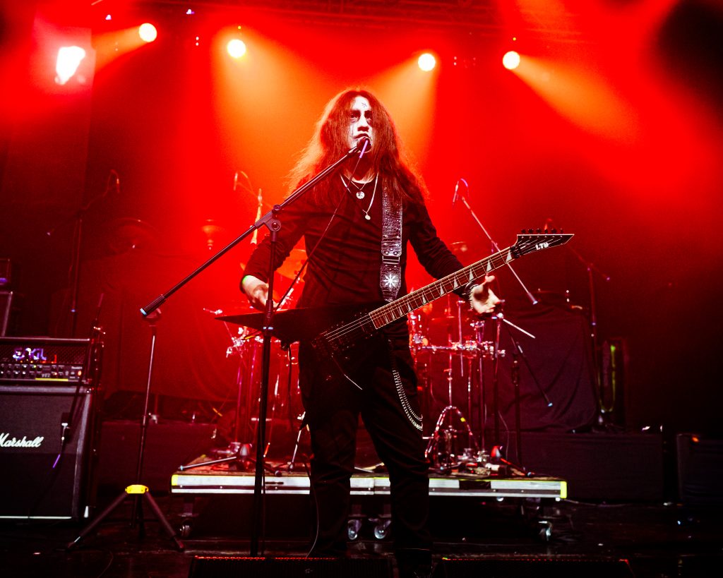 La jornada arrancó con Nox Terror, quienes desplegaron un show cargado de oscuridad y técnica, ideal para calentar motores de lo que sería una velada infernal. Su repertorio combinó clásicos de la banda con un guiño hacia el futuro, presentando “Blood Mills” como adelanto de su nuevo material. Temas como “Cursed Destination”, “The Light” y “Frostbound Realm of the Dead” marcaron un viaje entre riffs densos y atmósferas sombrías, dejando en claro que el underground chileno tiene un peso propio que puede medirse en cualquier escenario.