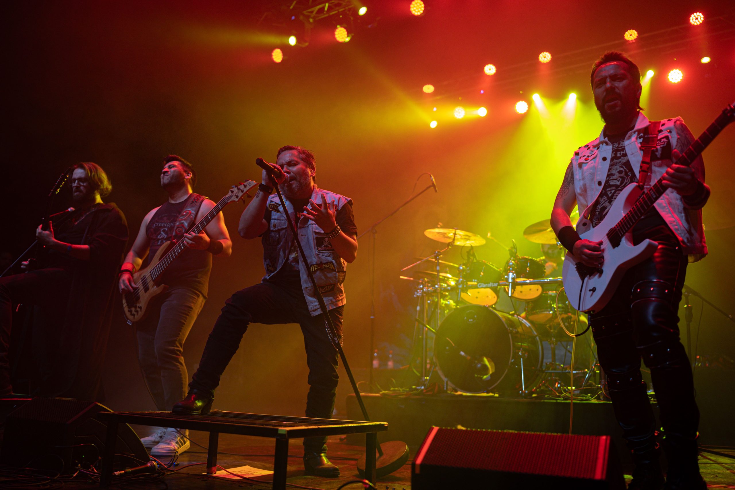 Sin tregua la banda de heavy-power metal llega hasta el escenario: Francisco Pérez, Julio Soto, David Plaza, el guitarra incógnito y Jaime Contreras en las voces. El setlist es corto, pero intenso.