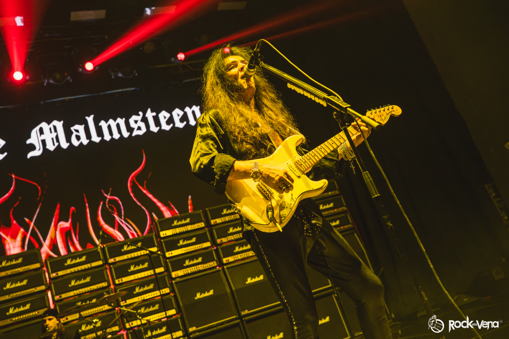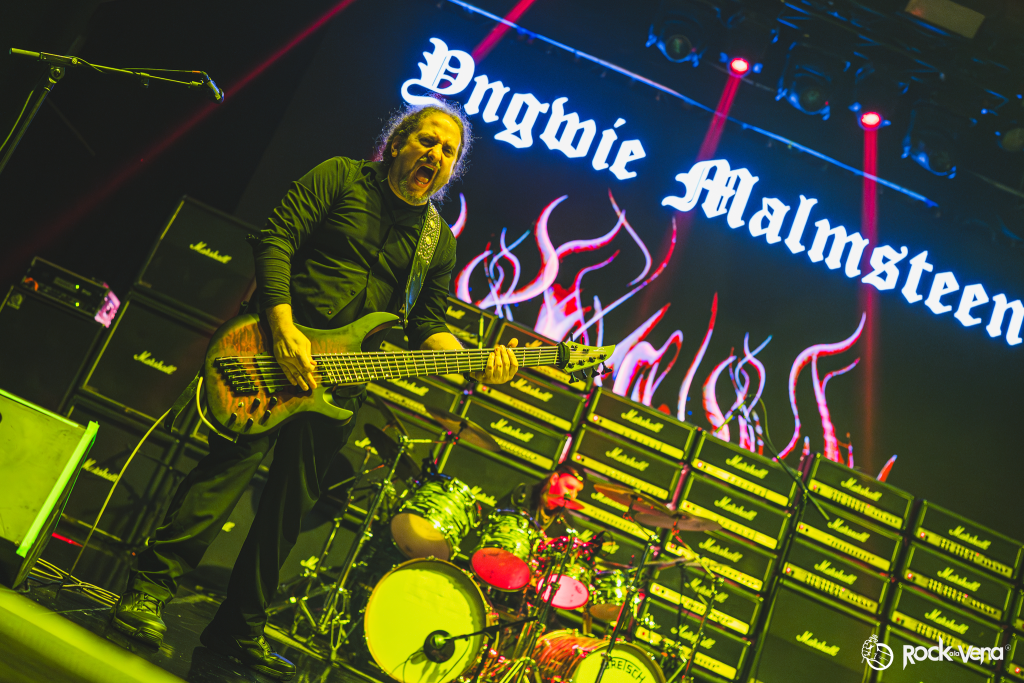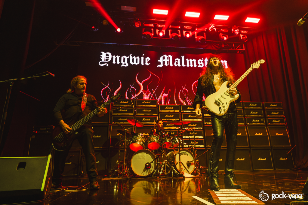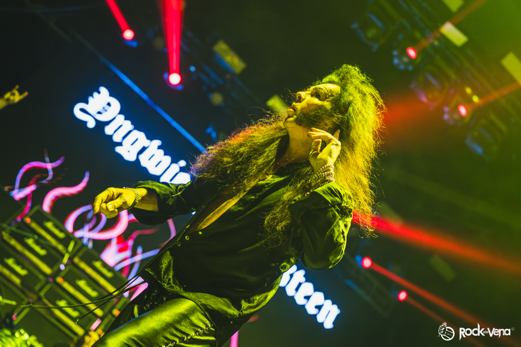 Desde que arrancó con la explosiva “Rising Force”, el público fue arrastrado por una tormenta de neoclásico metalizado y técnica salvaje. Con una banda afilada como cuchillas y una puesta en escena directa, todo giraba en torno a la figura del maestro sueco: su guitarra, su carisma… y esa energía desbordante que no conoce pausas.